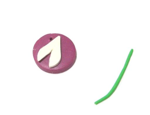 Aveți nevoie de polimer în trei culori, eu am ales mov pentru baza, verde pentru codita și alb vanilie pentru floare
