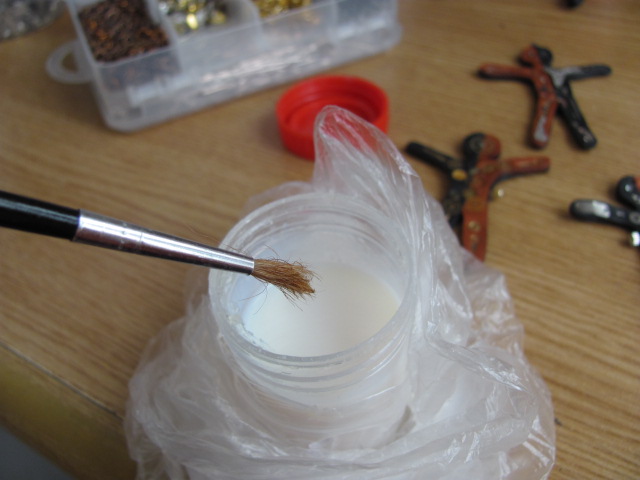 Lacul este necesar mai întâi ca să facă piesele mai strălucitoare, apoi ca să protejeze piesele. Întrucât piesele de ceas nu se lipesc cu nimic, ci doar se presează în fimo-ul crud, după coacere lacul le fixează mai bine.