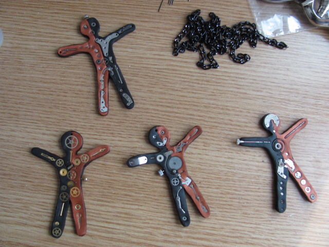Prindem pandantivele astfel obținute pe un lanț sau un șnur, după preferințe. Omuleții pot fi transformați chiar și în broșe.