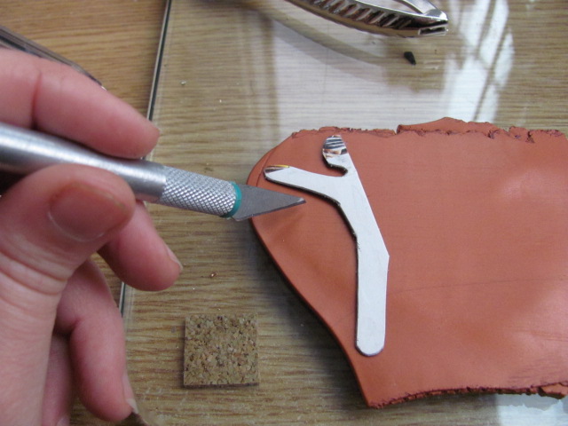Baza omuleților o confecționez de obicei din fimo cel mai închis la culoare. Dar fiind baza puteți folosi orice culoare, chiar și resturi de culori. Trasăm silueta întreagă cu ajutorul aceluiași cutter subțire: